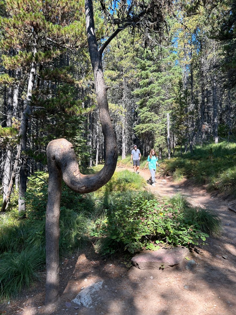 The corral for Swan Mountain Outfitters was essentially at the back of the parking lot for Many Glacier Hotel which was very convenient for us. We booked the one hour Swiftcurrent loop at $85 a person with Ethan as our guide. The terrain on Piegan trail was hilly and our horses (Ike, Navigator, Trevor and one we can’t remember) did a great job of bringing us up and over and around the dense forest.