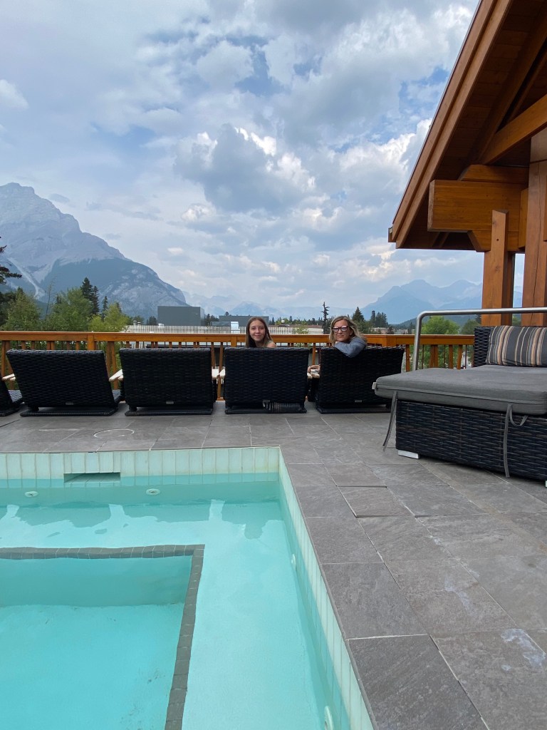 We chose the Moose for the close proximity to downtown, complimentary parking, and the rooftop hot tubs and fire rings with views of the Rockies. Many of the hotels along Banff Ave. all looked very nice and appeared to be good choices.