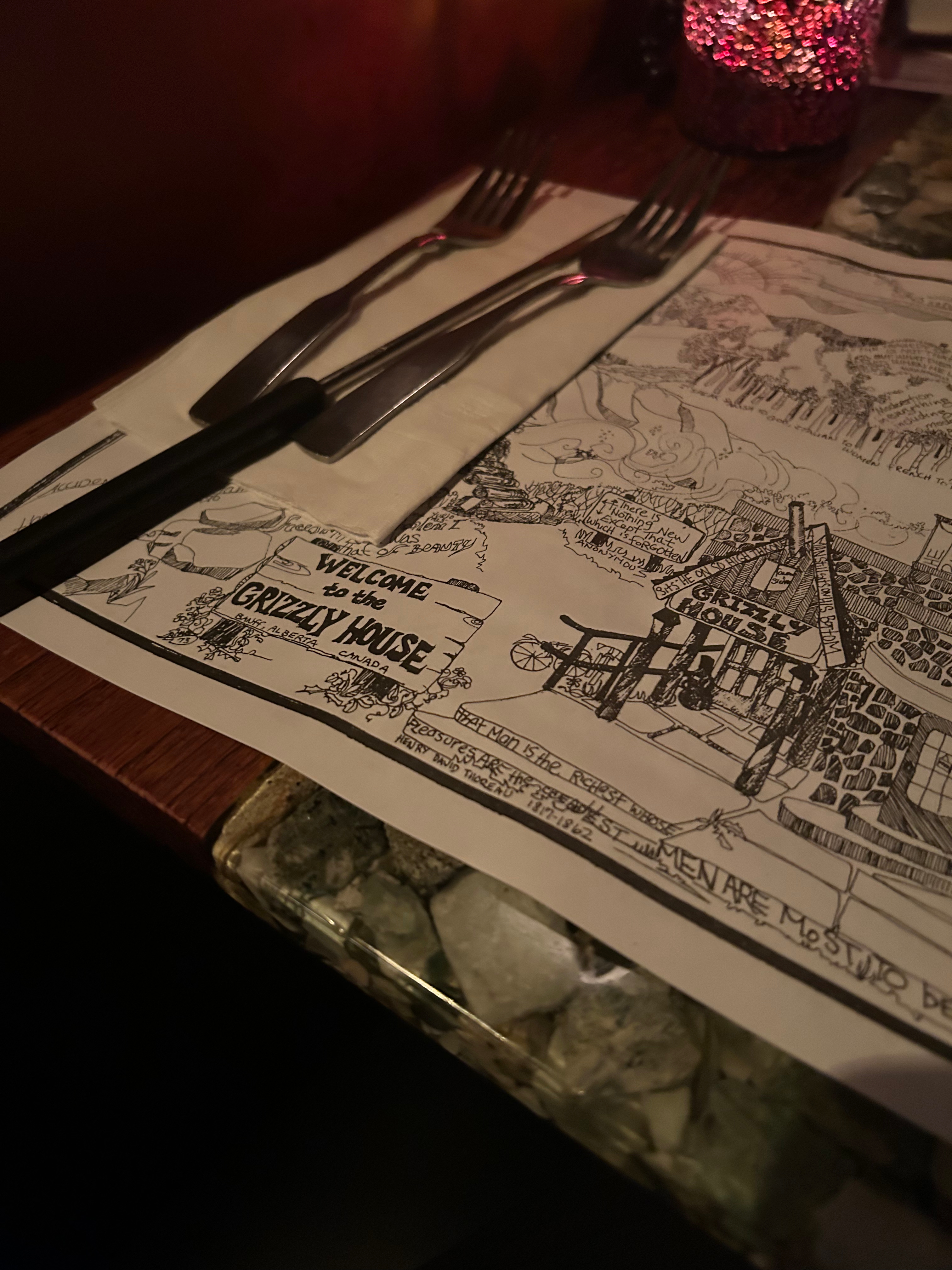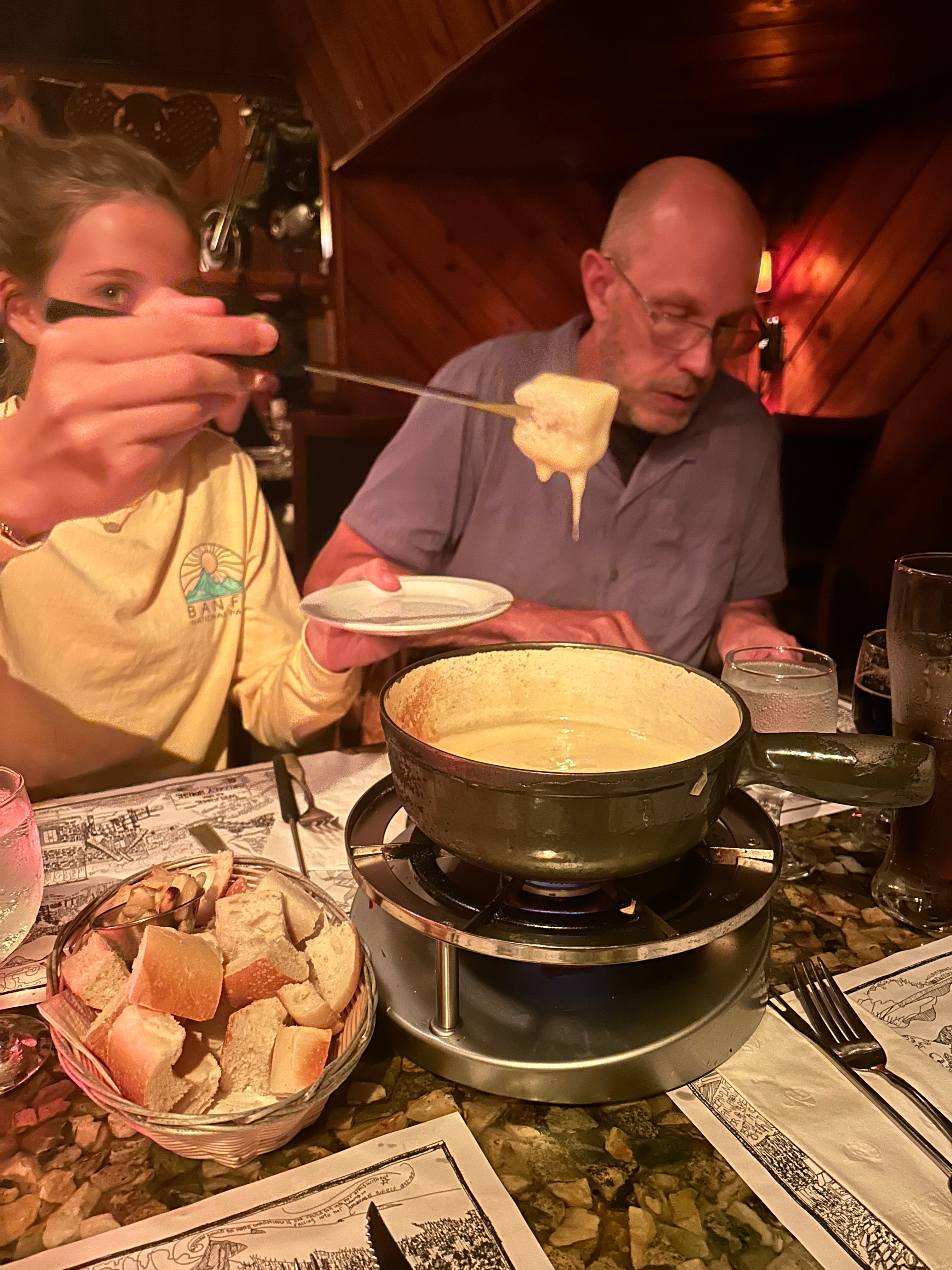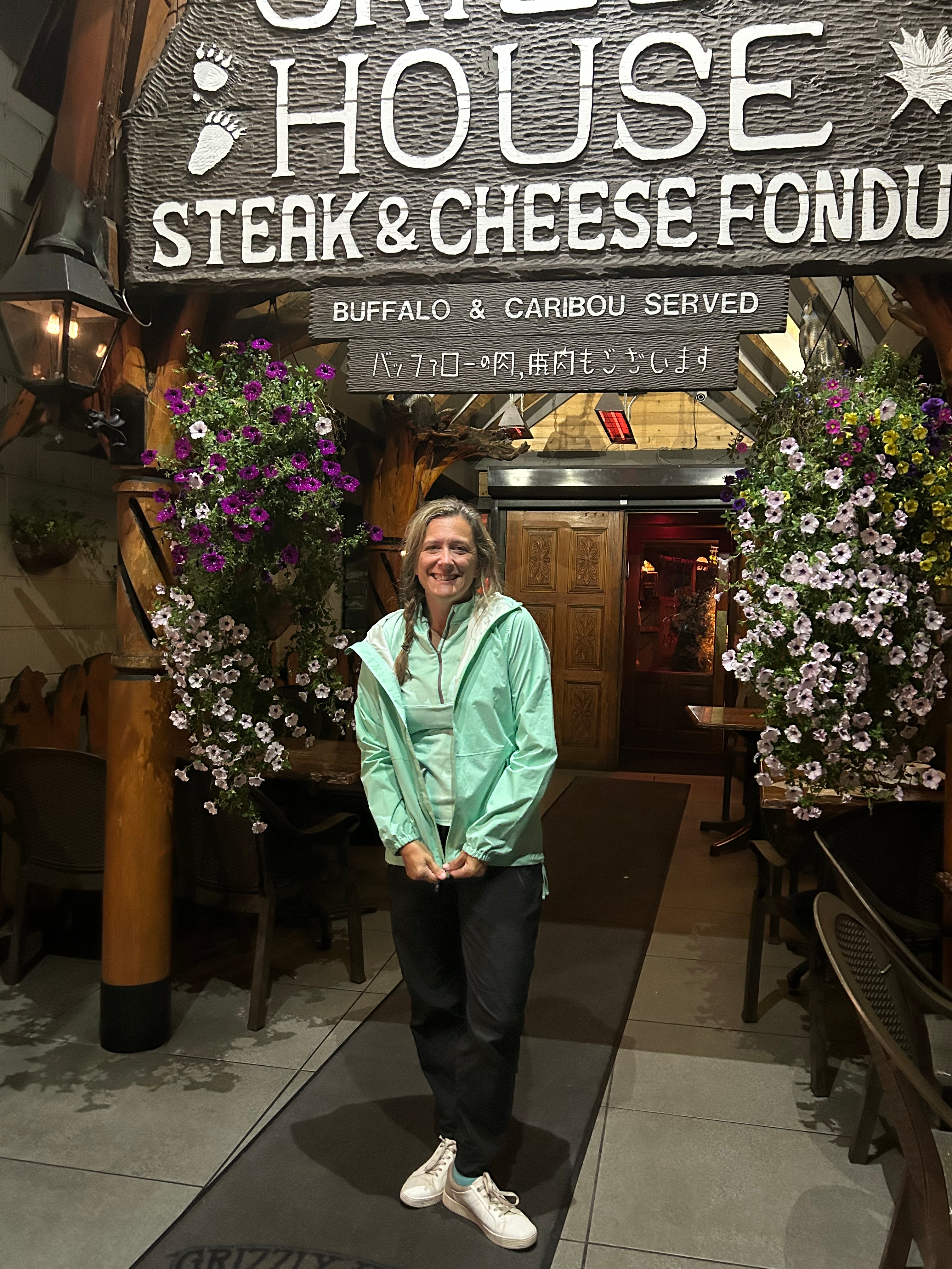 So far the trip had been going without even a small hiccup and then wham! Traffic Jam. And not a Bear Jam, the kind of traffic jam that we had grown to love. This one we would later find out was due to a sinkhole on Trans Canada Highway 1. Instead of 30 minutes back to our hotel to give us all plenty of time to shower and get ready for our fondue dinner we were an hour late for our reservation and almost missed the open kitchen. Shout out to The Grizzly House staff in downtown Banff for holding the reservation made a month ago for an extra hour, right before the kitchen closed. The fondue experience was so fun! If the wood paneled walls, the phones at every table and the kitschy decor aren’t enough, the 70s soundtrack (think Jim Croce, Seals and Crofts, Carly Simon and Carole King) will make your night!