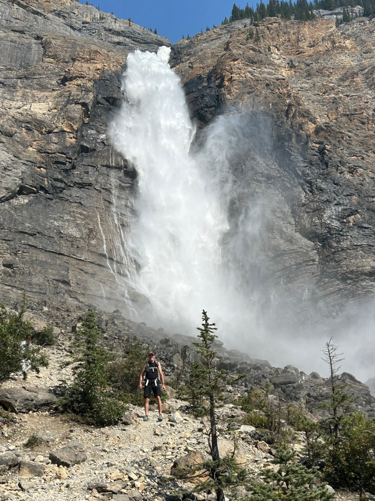 After a relaxing morning at Emerald Lake, we headed down the road to Takakkaw Falls to see one of the highest waterfalls in Canada. The roar of the waterfall sends a mist that will get you a bit wet as you are walking up! The first part of the trail is paved and easy to walk to get a good view. We chose to climb a bit further along the falls!