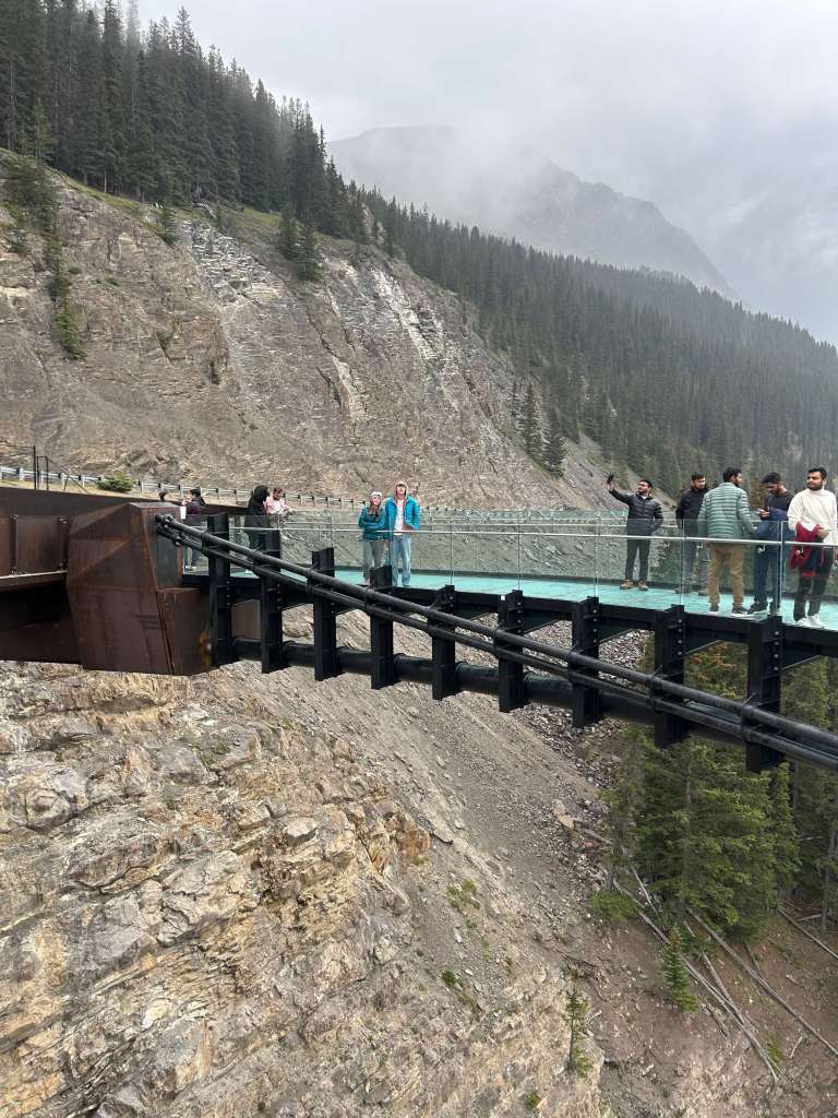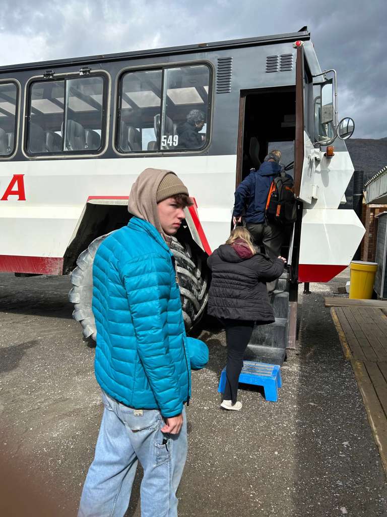 We spent more time at the Columbia Icefields, where we had reservations for both the Icefield Adventure and the Skywalk. This was one of the kids’ favorite stops! We boarded a massive Ice Explorer vehicle that took us to the Athabasca Glacier. Once there, we got to walk on the glacier itself and even collect some of the pristine, ice-cold water. Be sure to bundle up—hats, gloves, and winter jackets are a must, as the area is quite chilly! The cost was around $100 a person, but we thought it was well worth it.