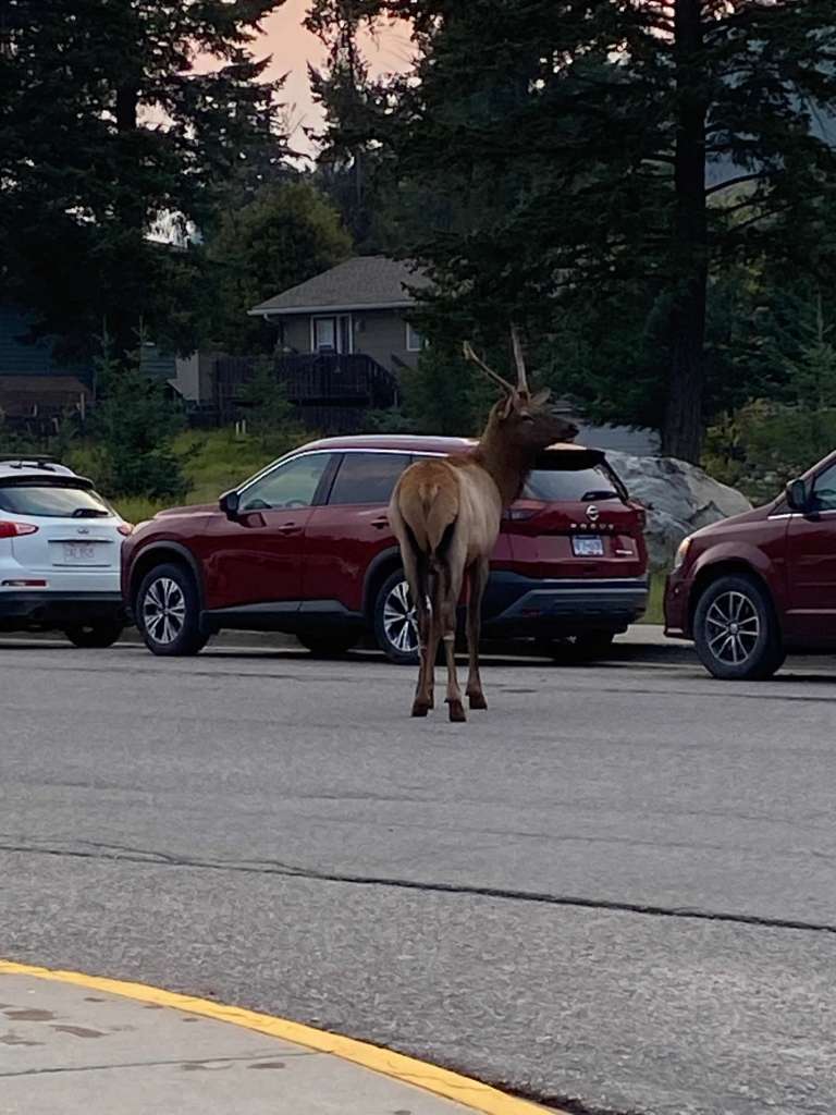 After some rest, we headed to Jasper Brewing Company for dinner. On our way back to the inn, we were treated to the sight of another elk casually strutting down the middle of the road, like he owned the place!
